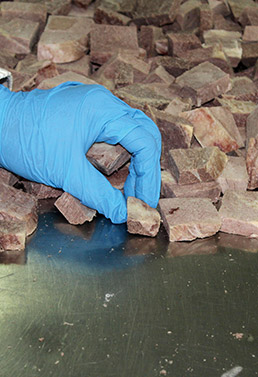 Taze ve saf et seçilir, hiçbir ek malzeme kullanılmadan parçalara ayrılır; yağ, deri ve kemikler ise temizlenir.