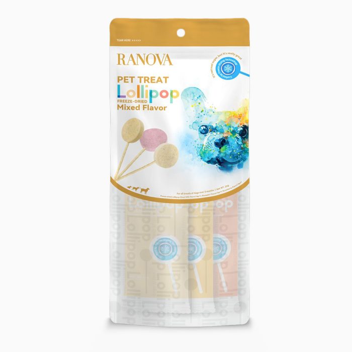Renkli lolipop şeklinde tasarlanmış Ranova köpek ödülü, kedilerin ilgisini çekerek eğlenceli bir şekilde beslenmesini sağlar. İçeriğinde kullanılan aromalar kedilerin damak zevkine hitap eder.